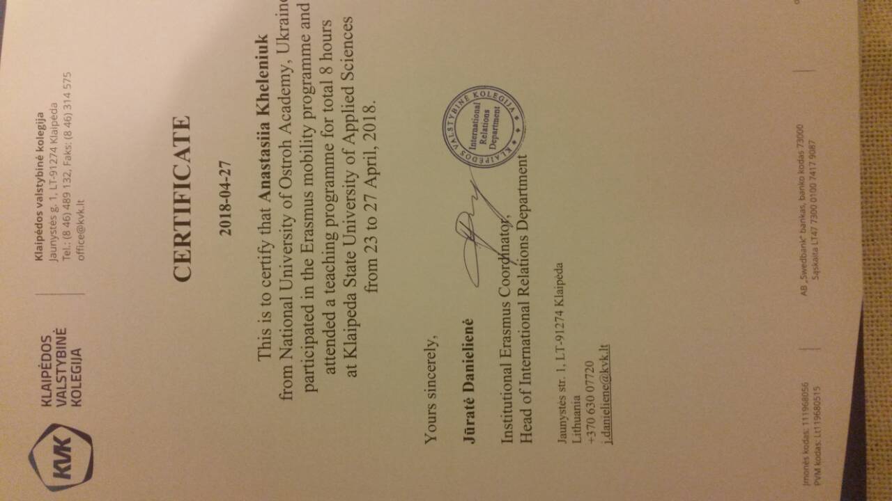 Сертифікат, що підтверджує участь у програмі Erasmus mobility program - 23.06.2018 (0,06 Мб).
