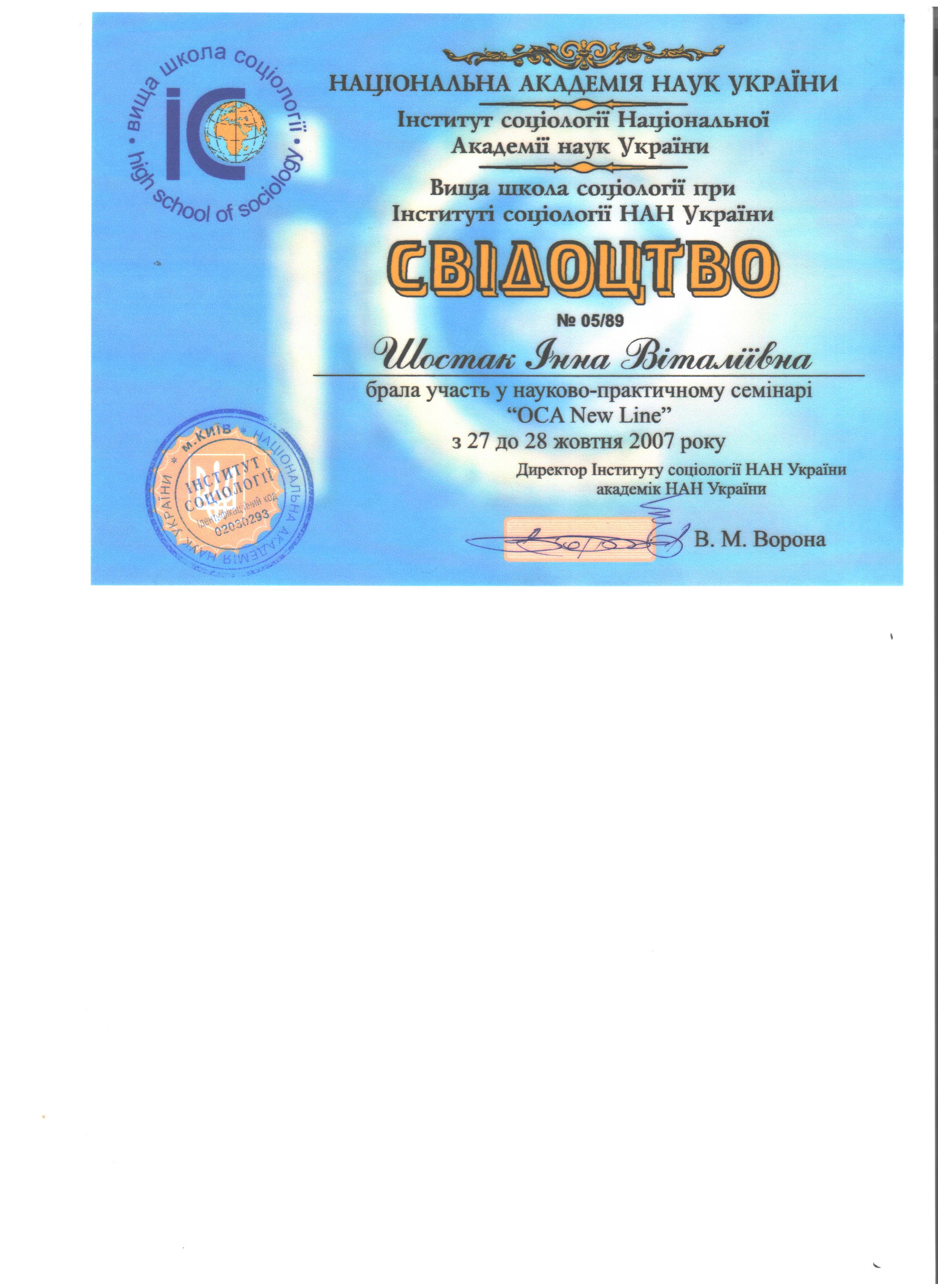10/2011 Диплом Міжнародної гуманістичної школи Східної Європи