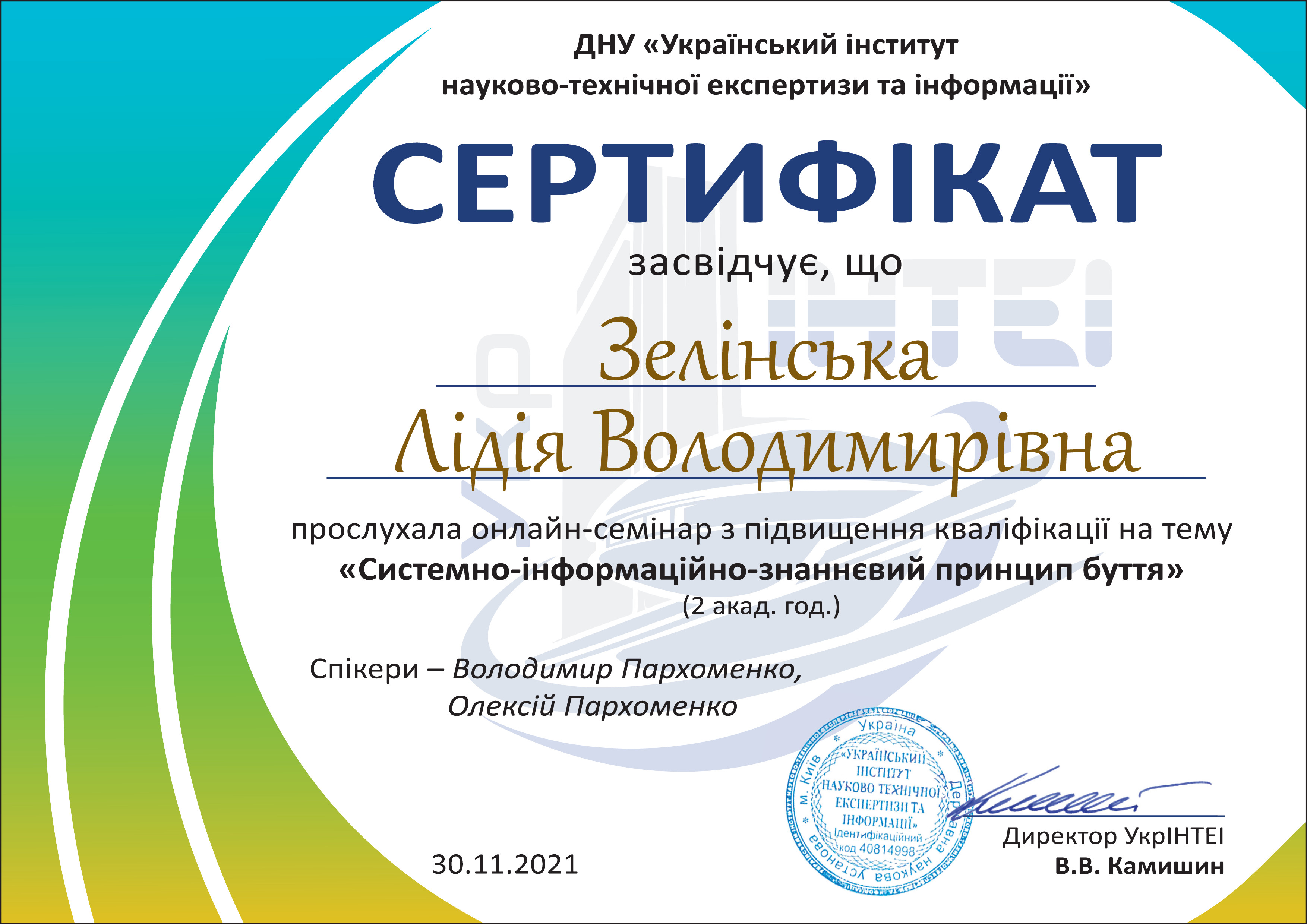 Cемінар УкрІНТЕІ на тему “СИСТЕМНО-ІНФОРМАЦІЙНО-ЗНАННЄВИЙ ПРИНЦИП БУТТЯ" - 30.11.2021 (0,84 Мб).