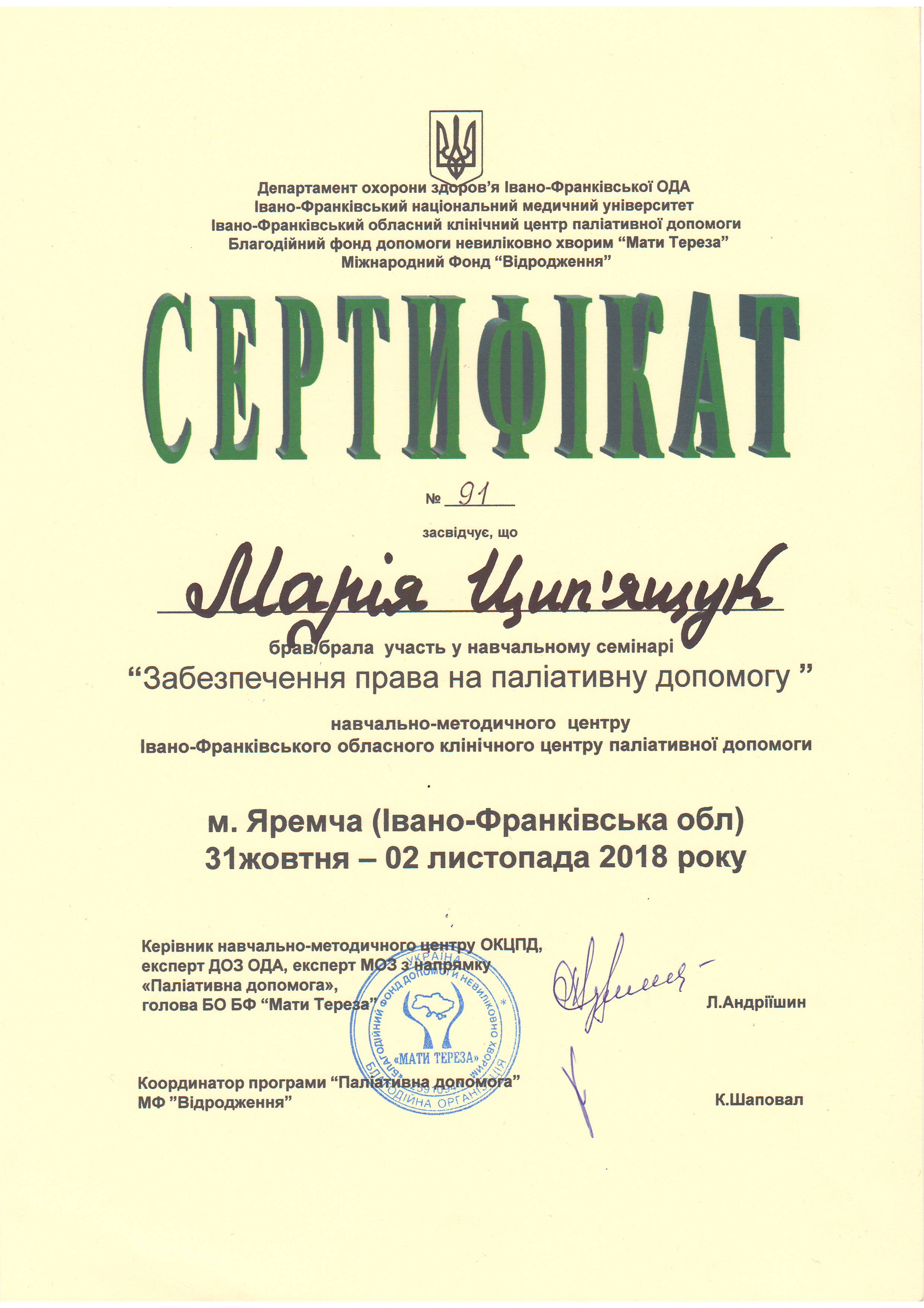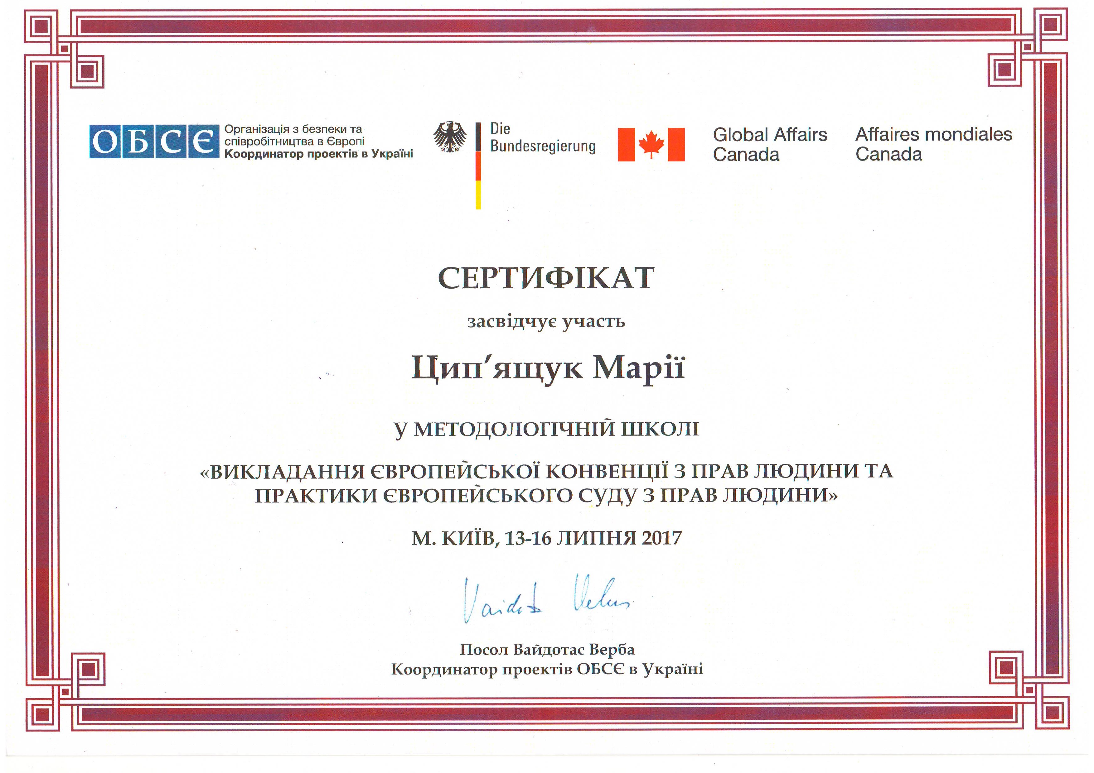 - Додаткова вища освіта – стажування на Факультеті права Маастрихтського університету, Нідерланди – січень-липень 2012 р.
