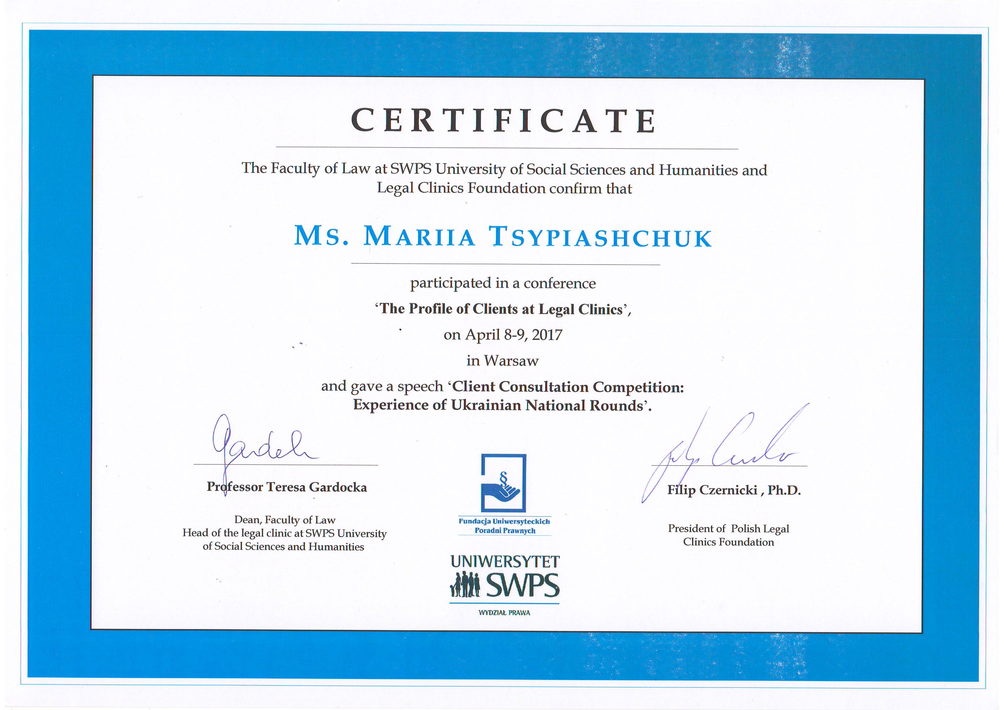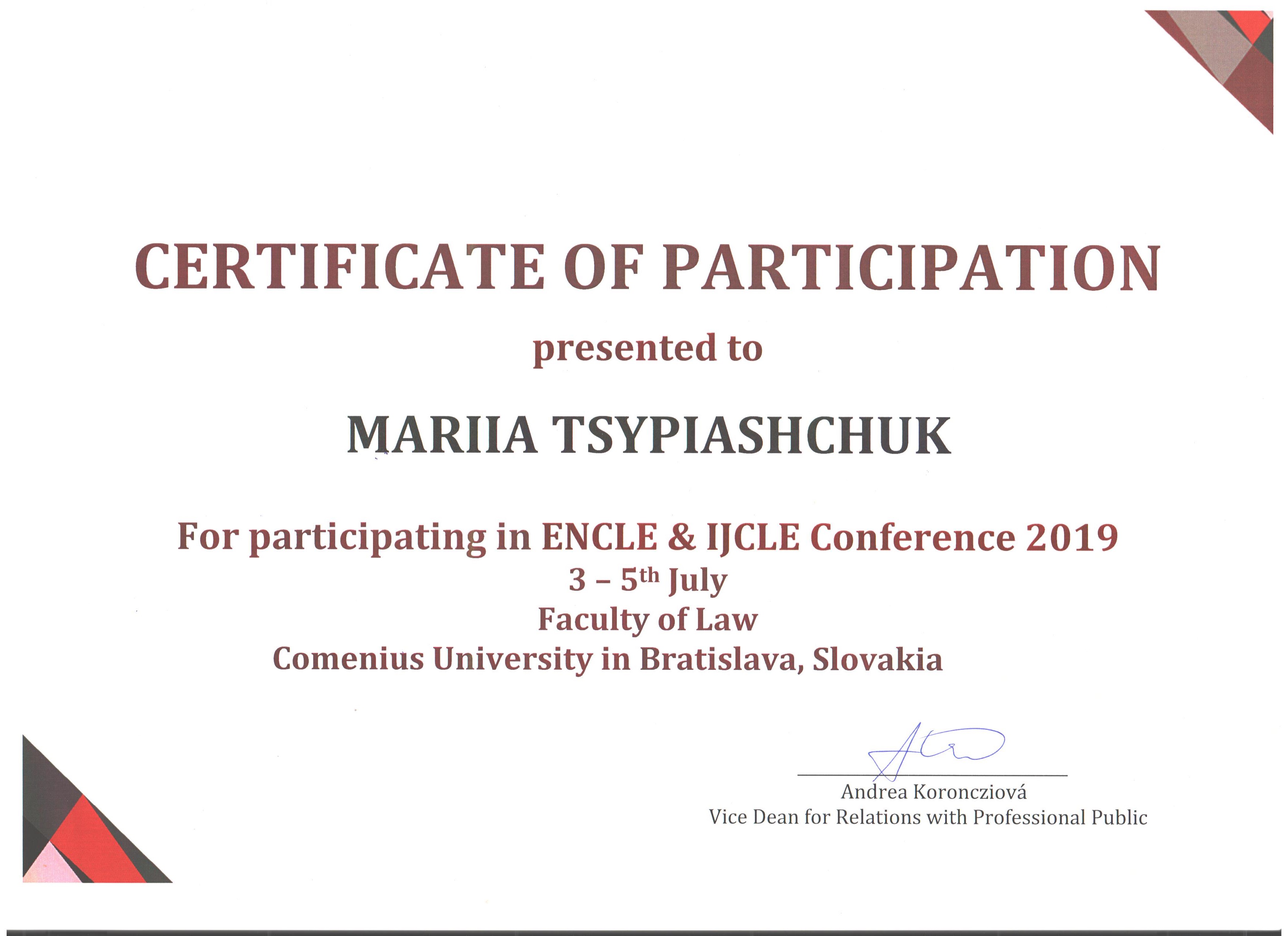 "Innovative Tools for Legal Clinical Education's Quality Assessment", Mariia Tsypiashchuk, Andrii Halai, Yuliia Lomzhets, Ashot Agaian - European Network for Clinical Legal Education and International Journal of Clinical Legal Education Conference 2019, 3-5 July, 2019, Bratislava, Slovakia