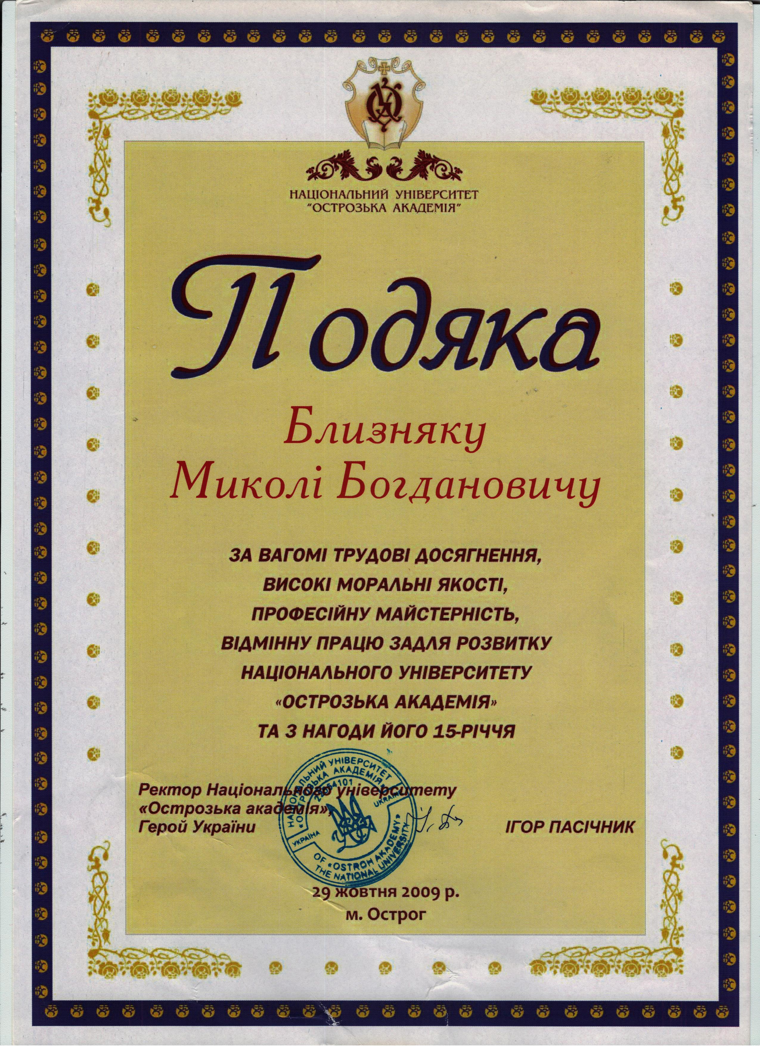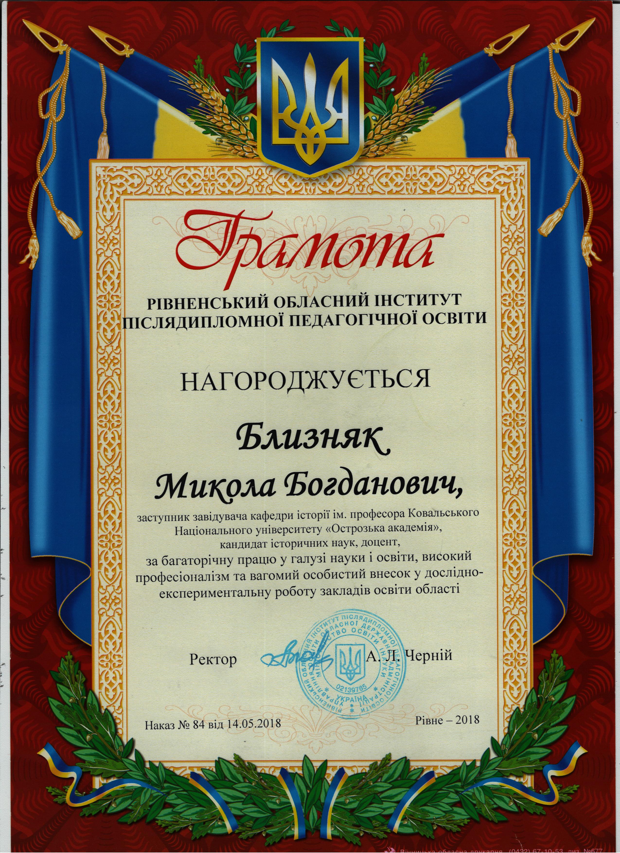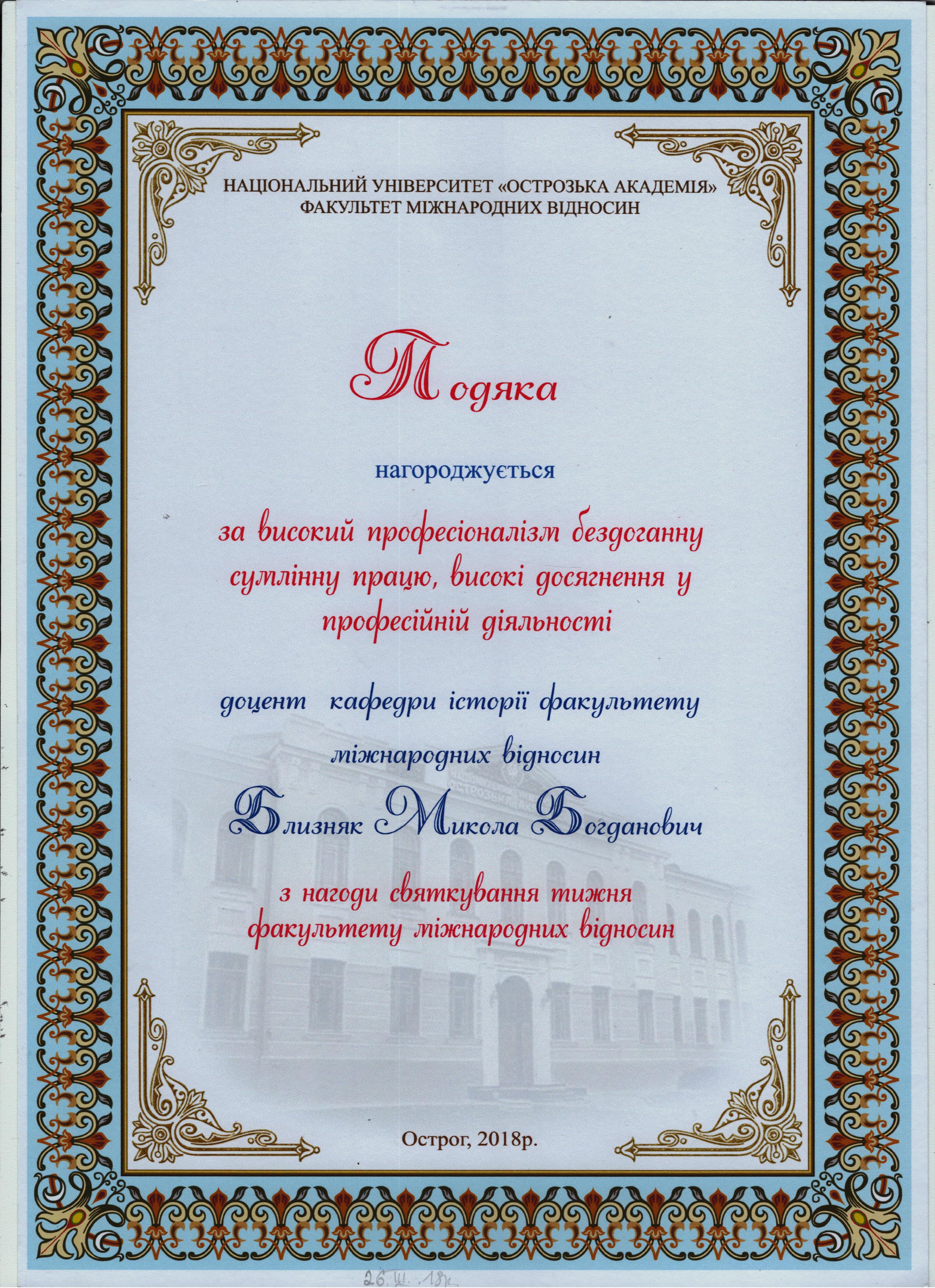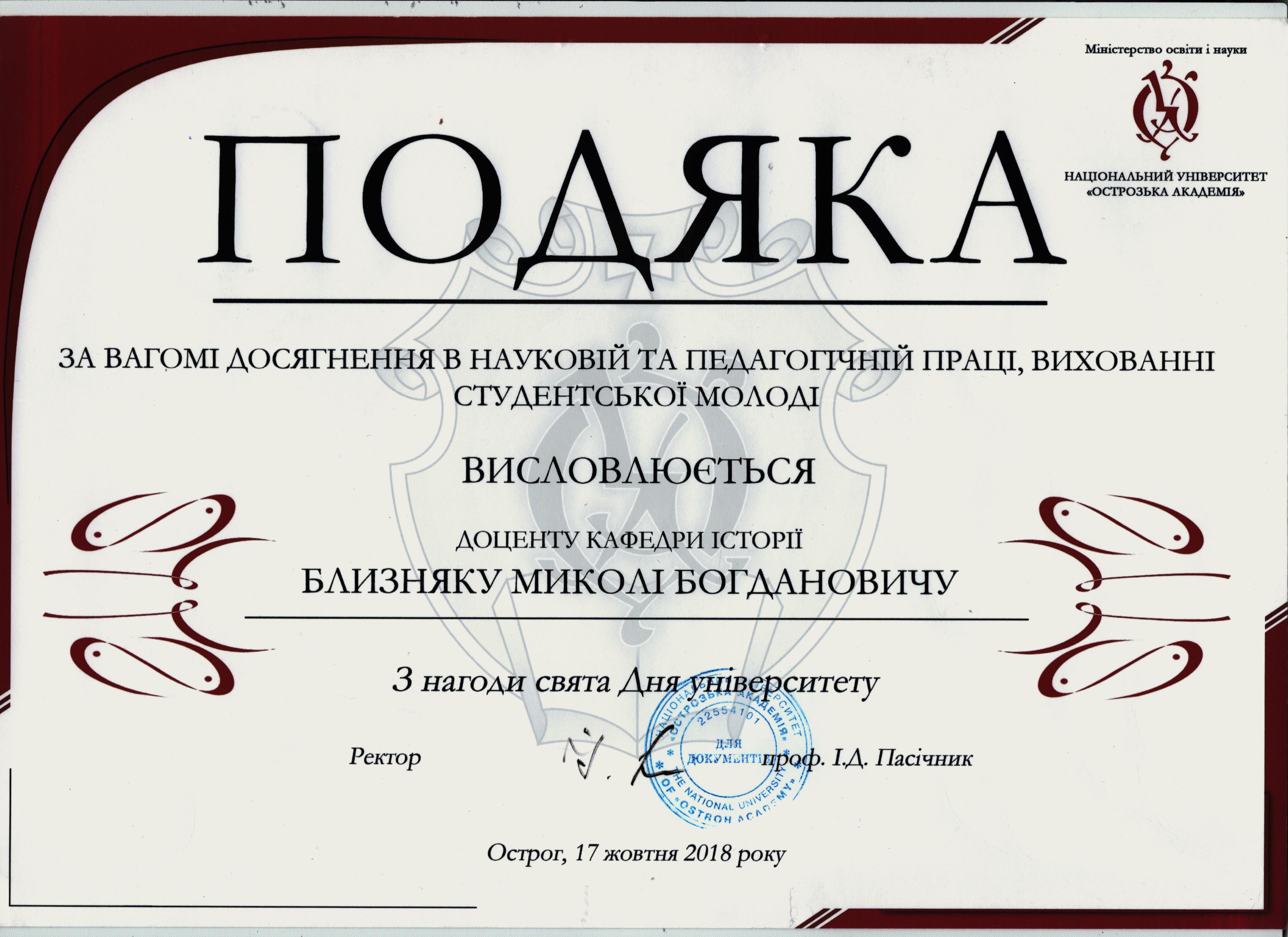 Близняк М. Два десятиліття на службі Кліо: підсумки ювілею і перспективи кафедри історії Національного університету "Острозька академія" // Актуальні питання гуманітарних наук. Матеріали І Всеукраїнської наукової конференції (Острог, 18 травня 2016 року). - Острог: Вид-во НУОА, 2016. С. 86 91.