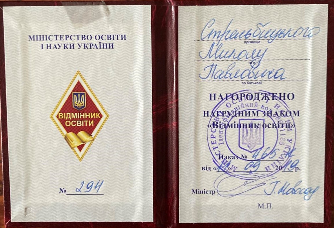 2019 – нагороджений нагрудним знаком МОН України «Відмінник освіти».