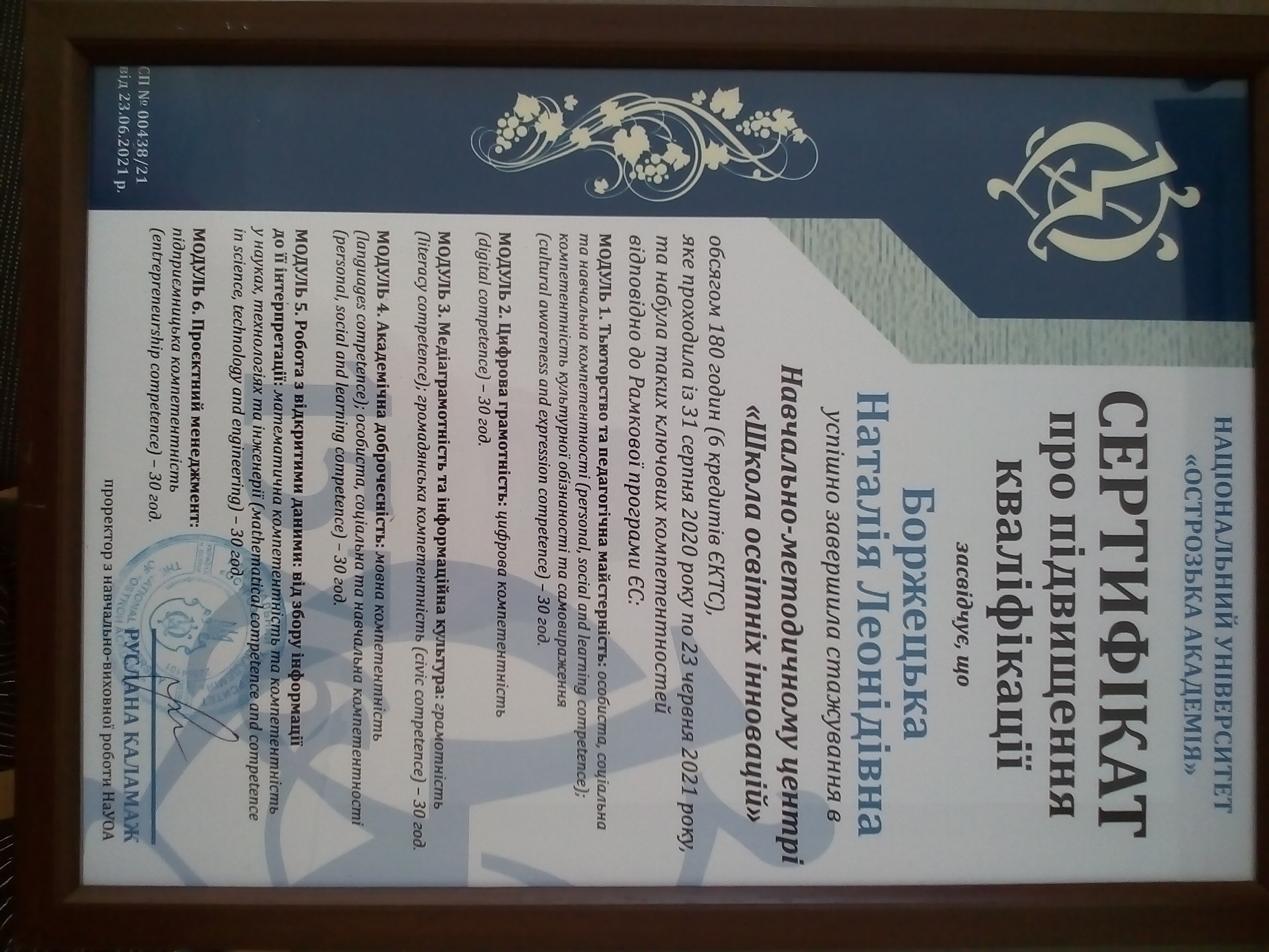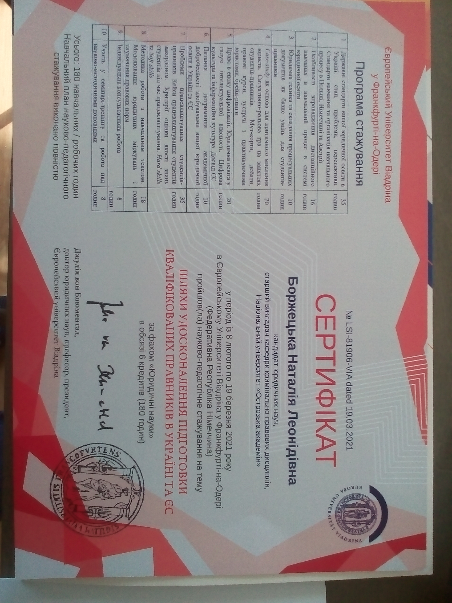 Боржецька Н. Л. Поняття та значення «правових висновків» Верховного Суду у кримінальних провадженнях. XXVІ наукова викладацько-студентська конференція "Дні науки" в Національному університеті "Острозька академія" (м. Острог, 11 травня 2021 р.).