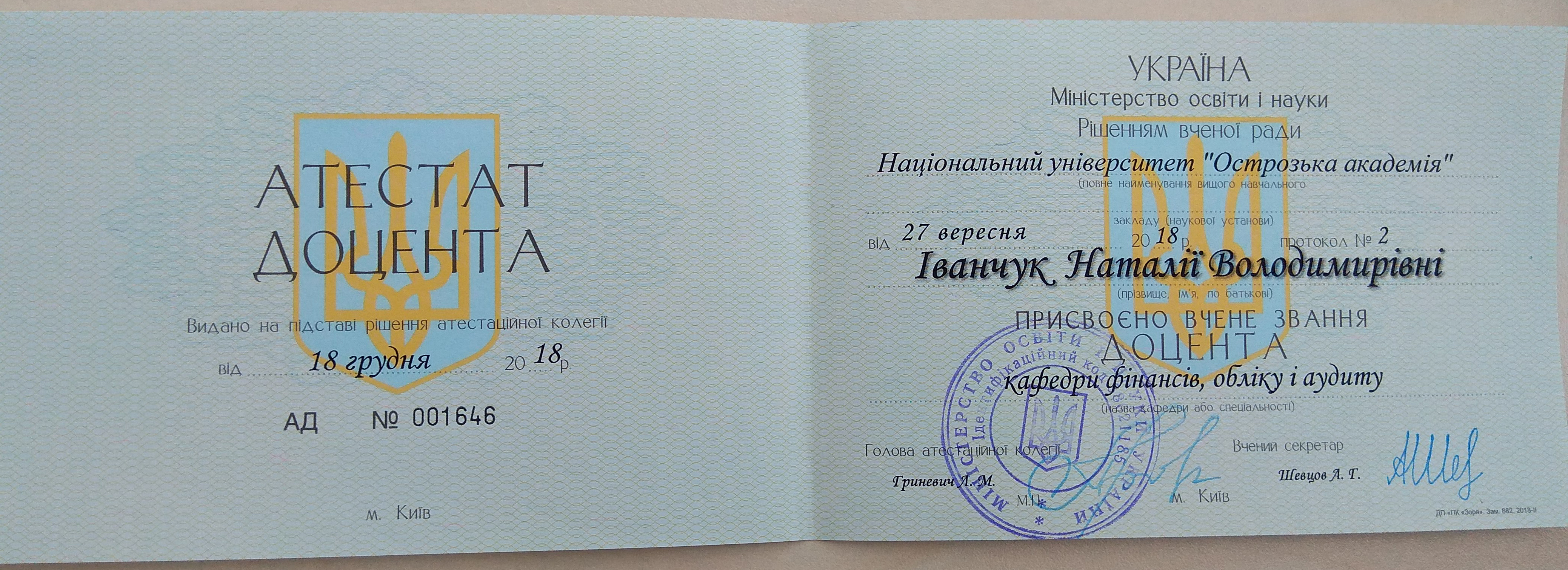 Атестат доцента кафедри фінансів, обліку і аудиту - 18.12.2018 (1,98 Мб).