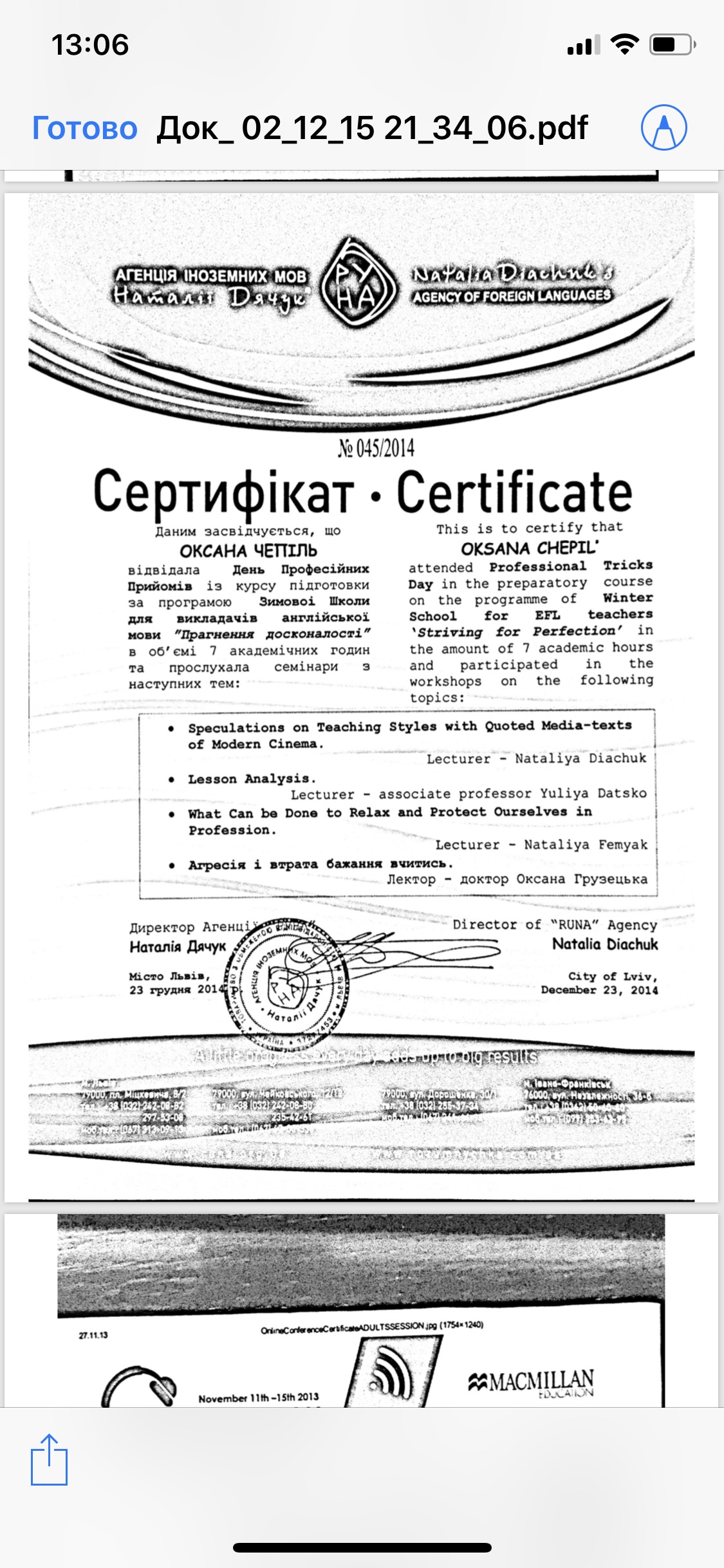 Lviv, “Runa”, Natalia Deachuk’s Agency of Foreign Languages, Cambridge English Language Assessment Center