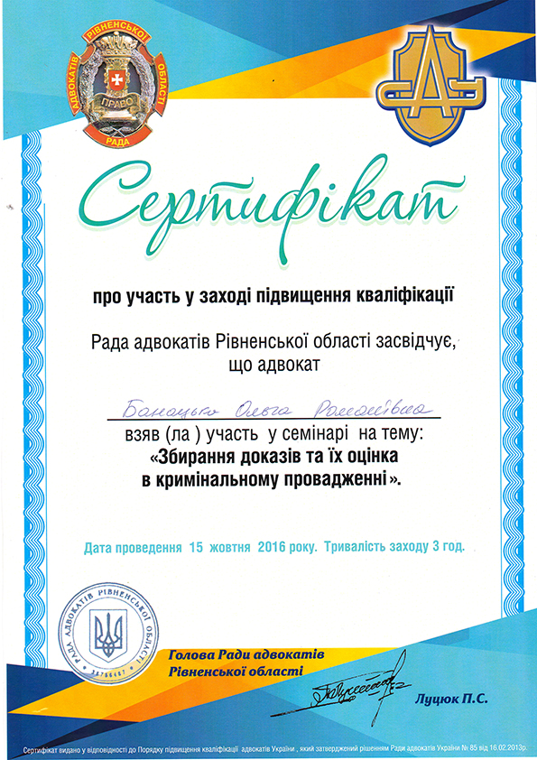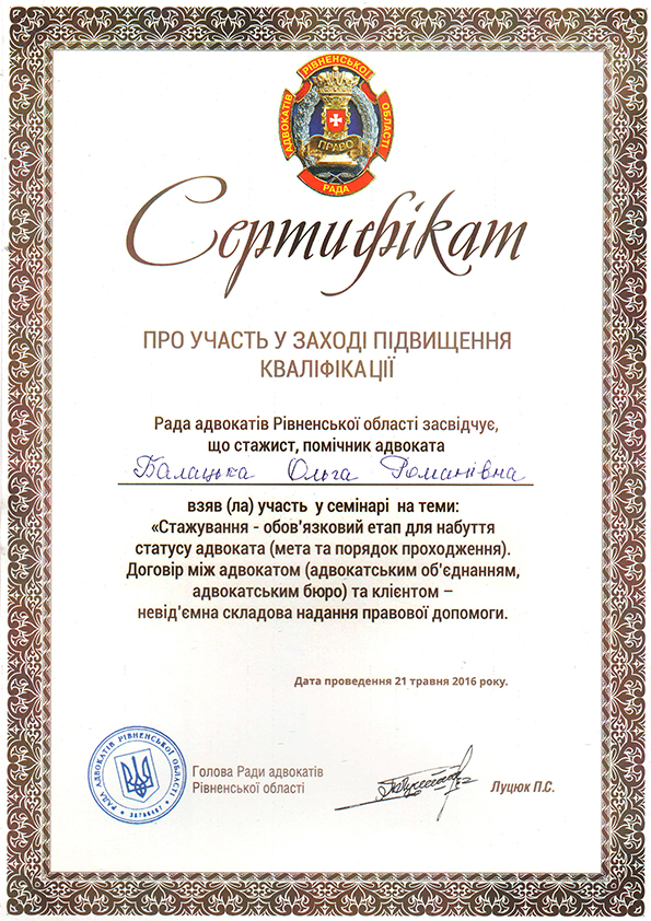 Вересень 2016 р. - по даний час - адвокат;