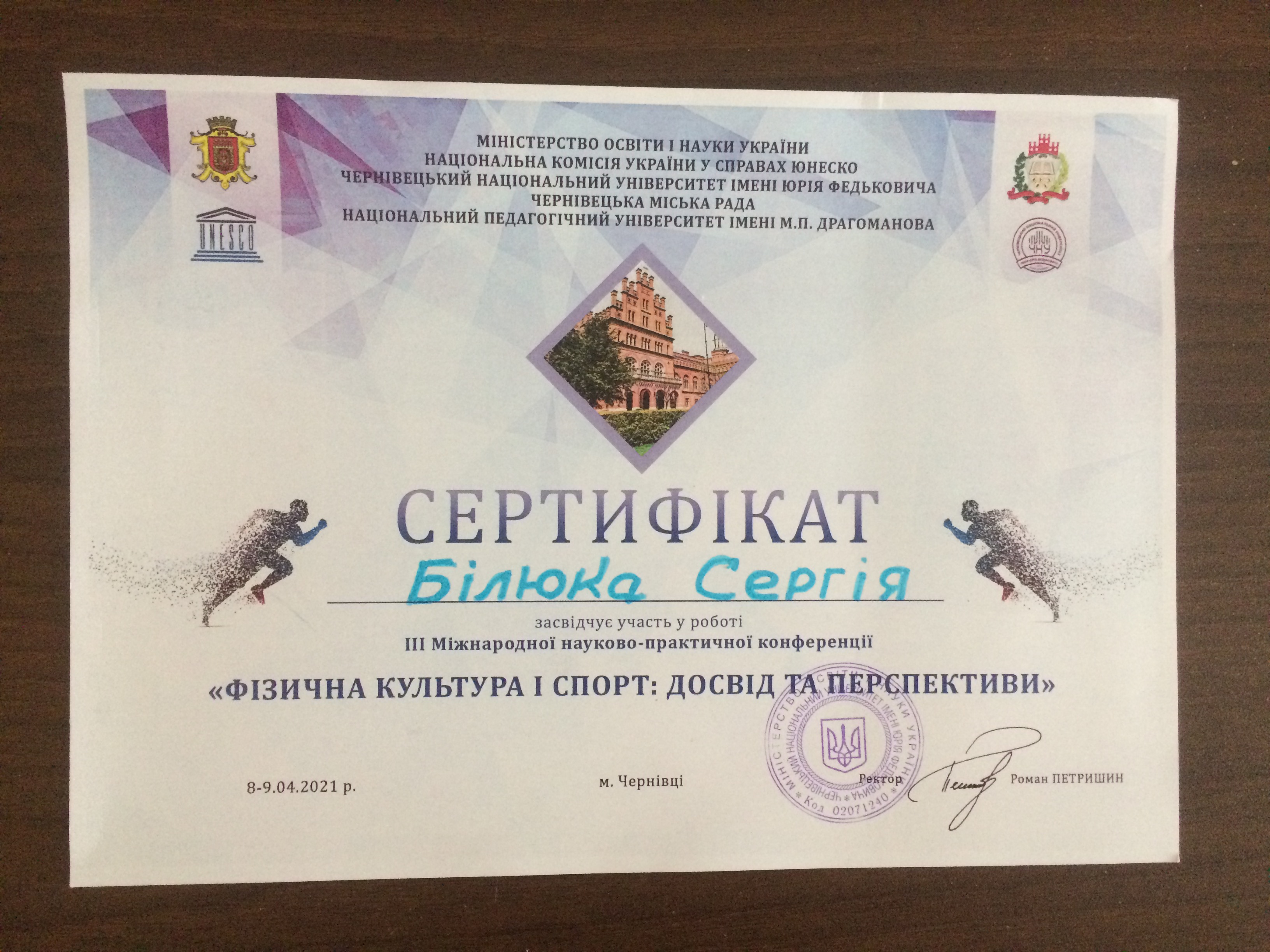 Участь у ХХVI науковій викладацько-студентській конференції» Дні науки» 11-14 травня 2021 року тема : «Особливості збереження стресостійкості у спорті»