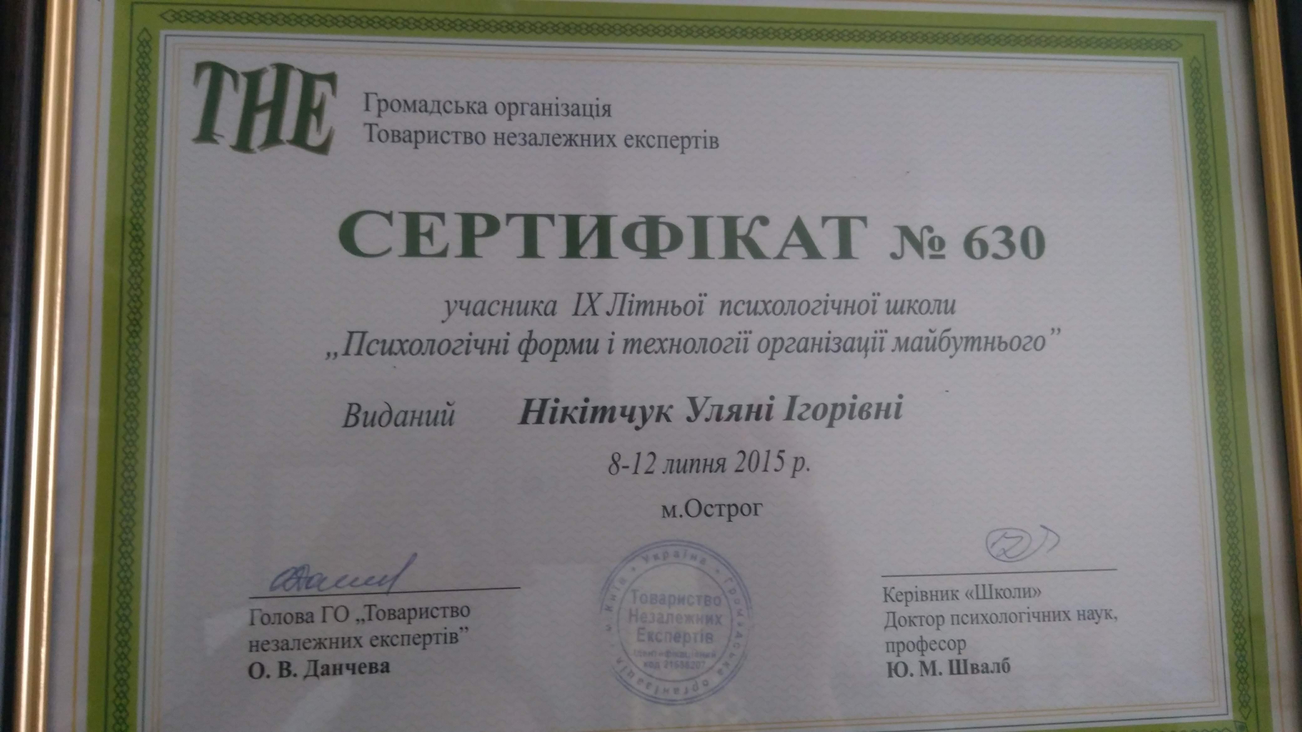 Сертифікат учасника Літньої психологічної школи - 12.07.2015 (0,6 Мб).