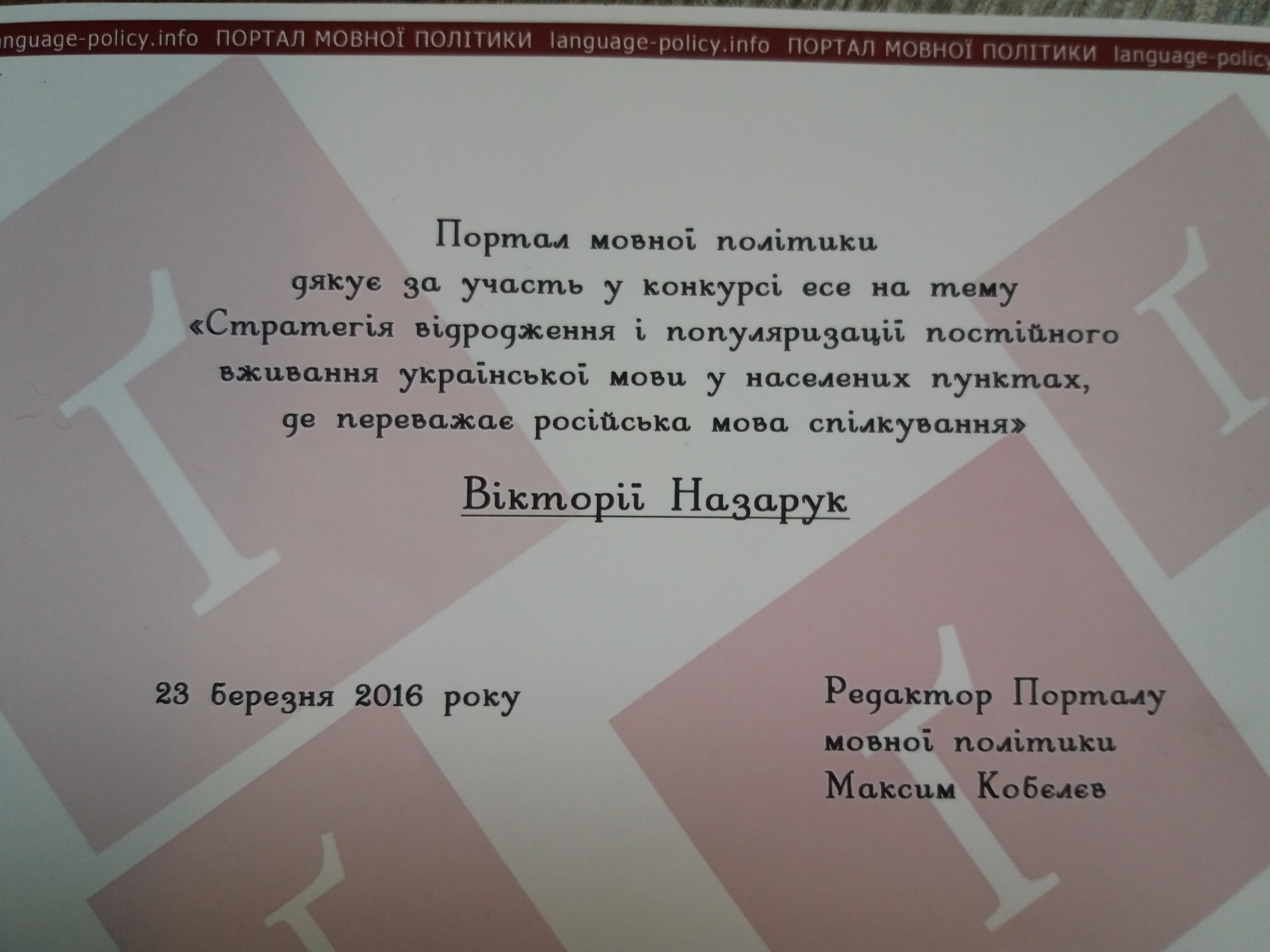 Nazaruk Viktoria. Dotrzymanie standardów dziennikarskich, jako ważny element bezpieczeństwa informacyjnego». Administracja wobec uwarunkowań bezpieczeństwa. Pułtusk, 2017. S. 265-271