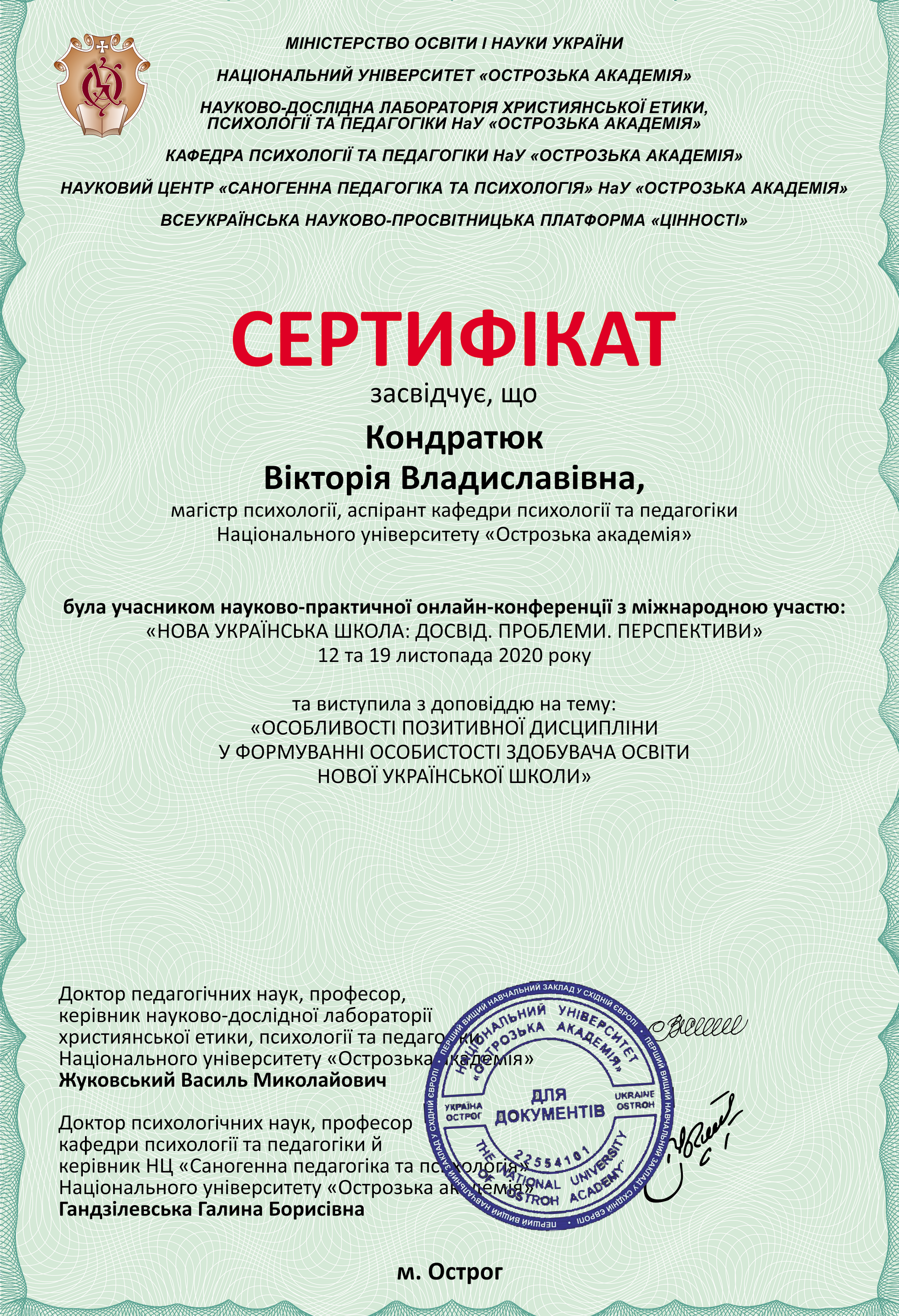 Certyfikat konferencji naukowej "Ukraina wobec Polski w XX i XXI wieku" - 28.11.2017 (2,36 Мб).