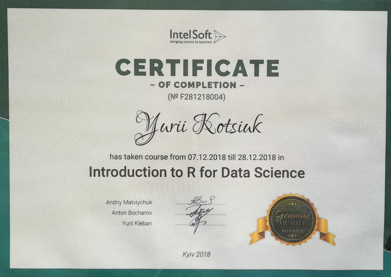 CERTIFICATE OF COMPLETION Introdaction to R for Data Science 2018 - 28.12.2018 (0,17 Мб).