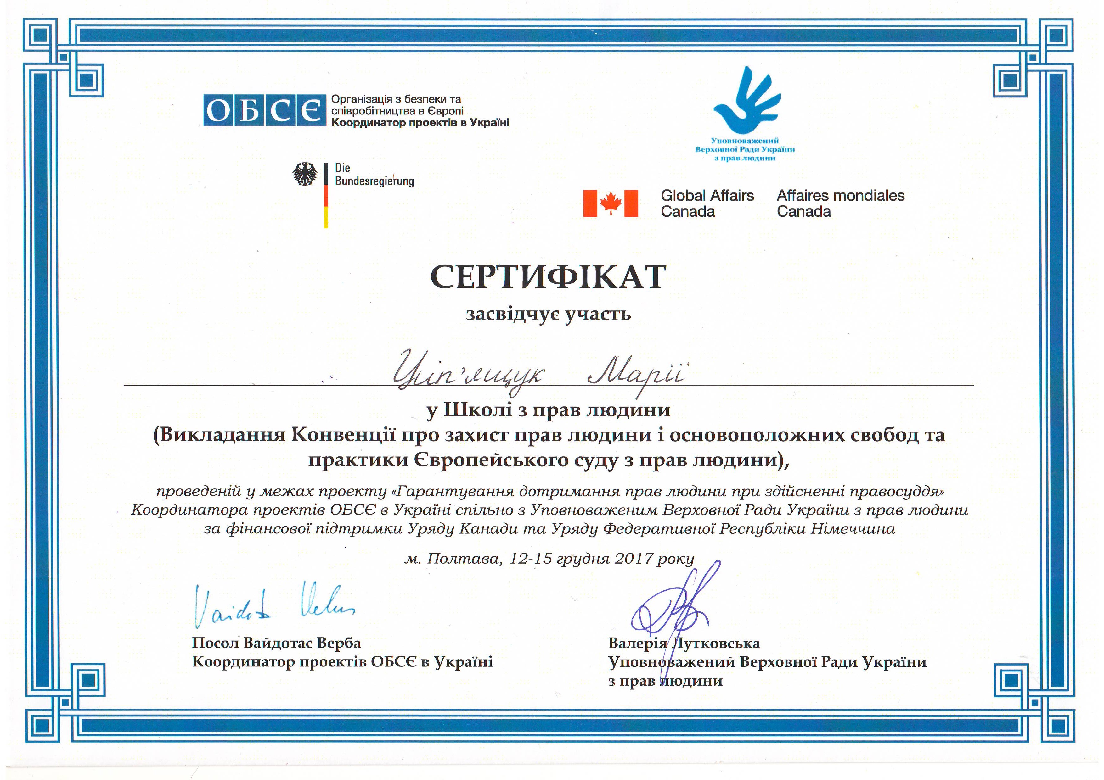 - Додаткова вища освіта – стажування на Факультеті права Маастрихтського університету, Нідерланди – січень-липень 2012 р.