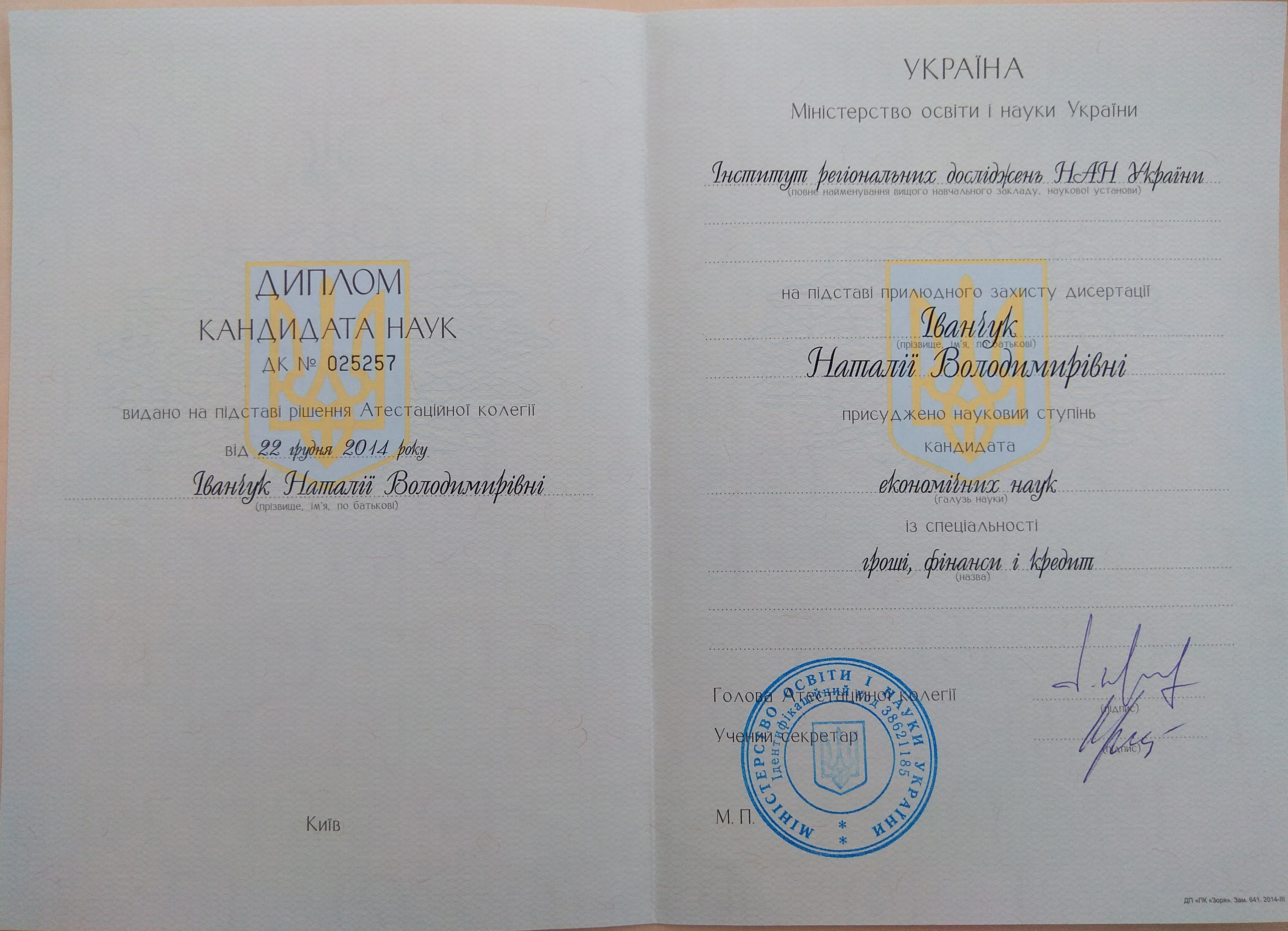 Диплом кандидата економічних наук - 22.12.2014 (2,61 Мб).