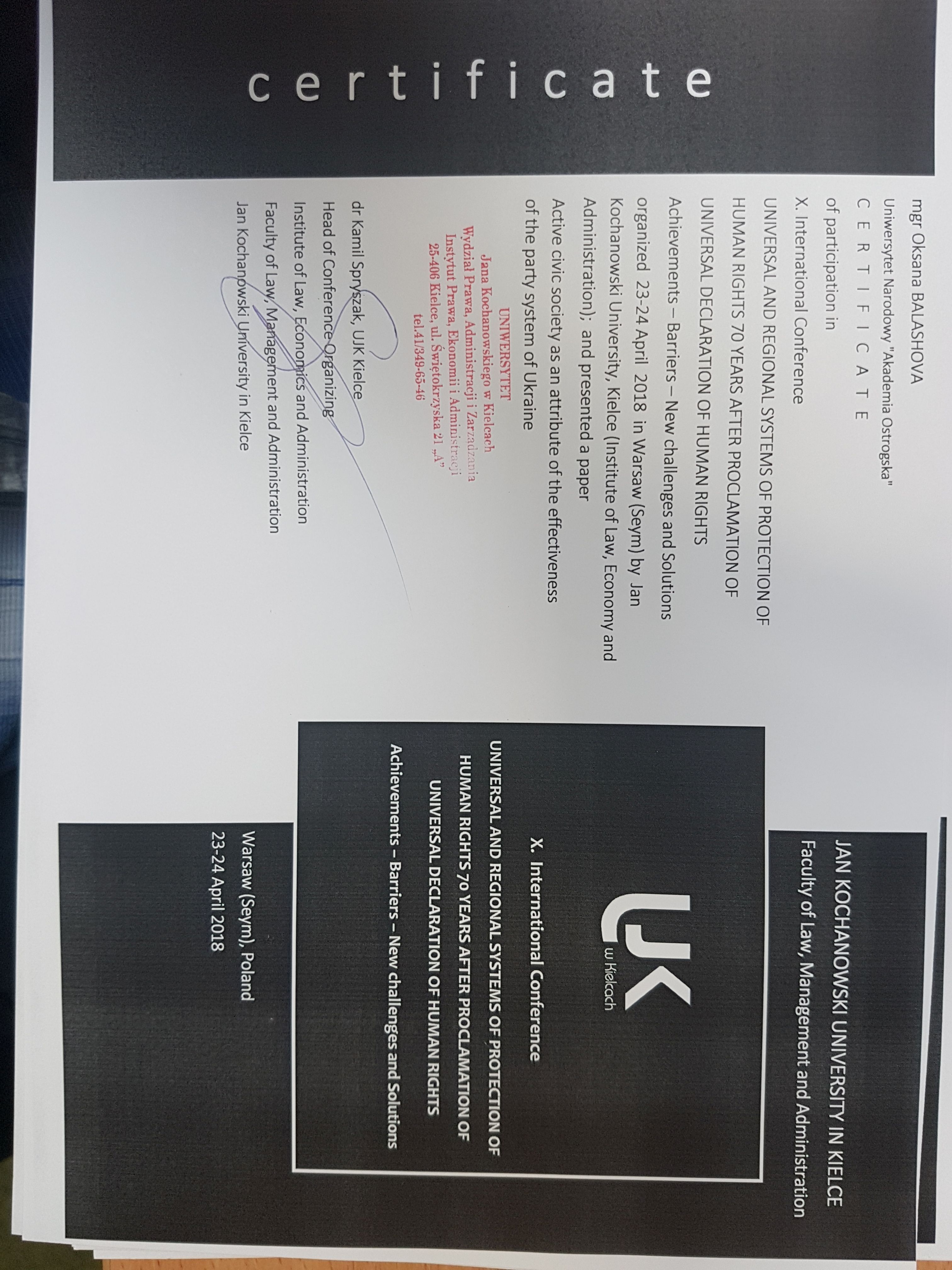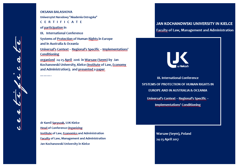 X International Conference “Protection of Human Rights in the Time of Crisis of Liberal Democracy”, Warsaw (Poland), April 15-16, 2019.