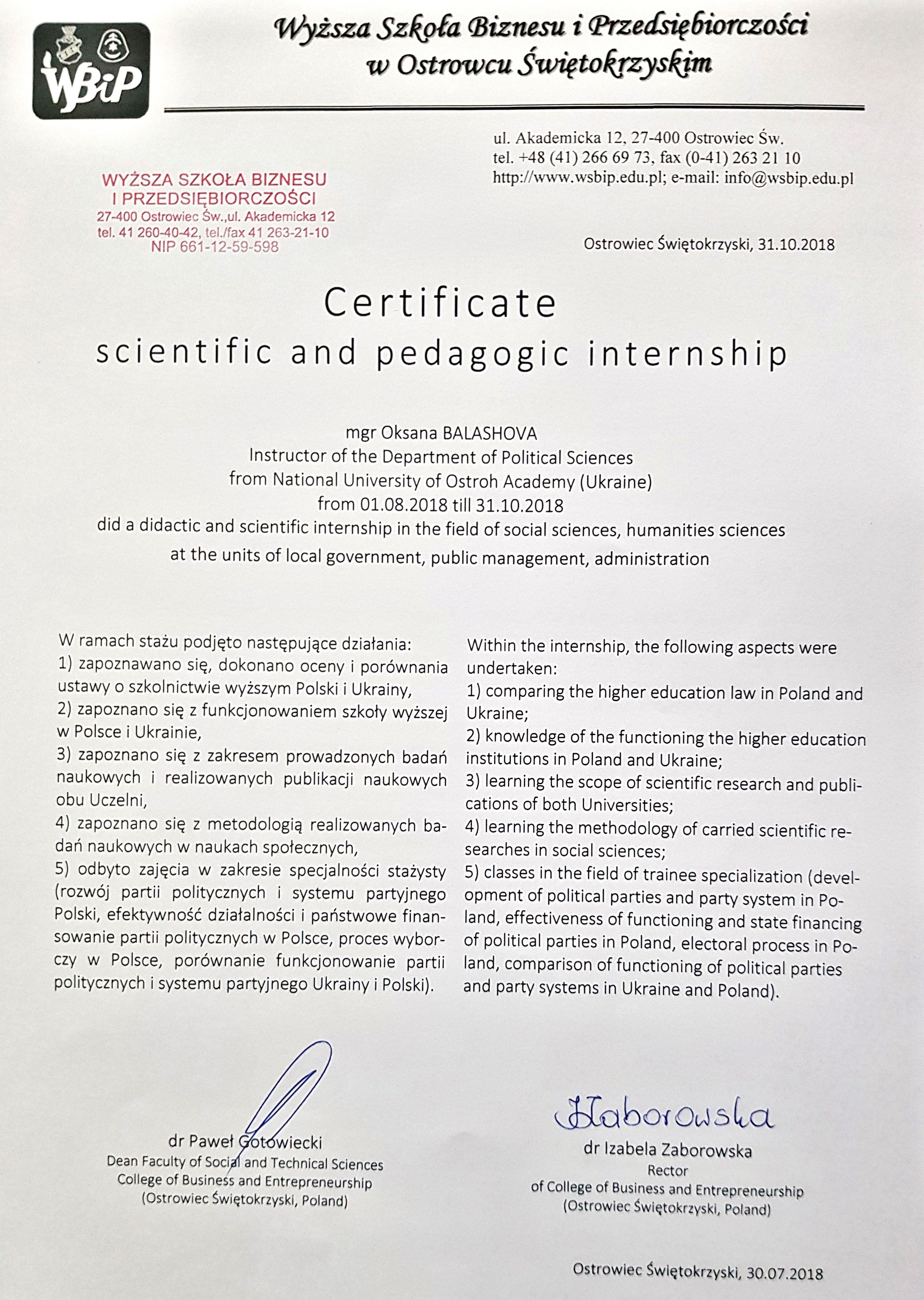 Sertificate of scientific and pedagogic internship 2018 - 30.10.2018 (1,44 Мб).