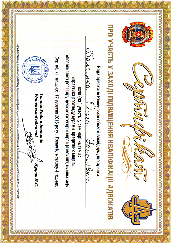 Вересень 2016 р. - по даний час - адвокат;