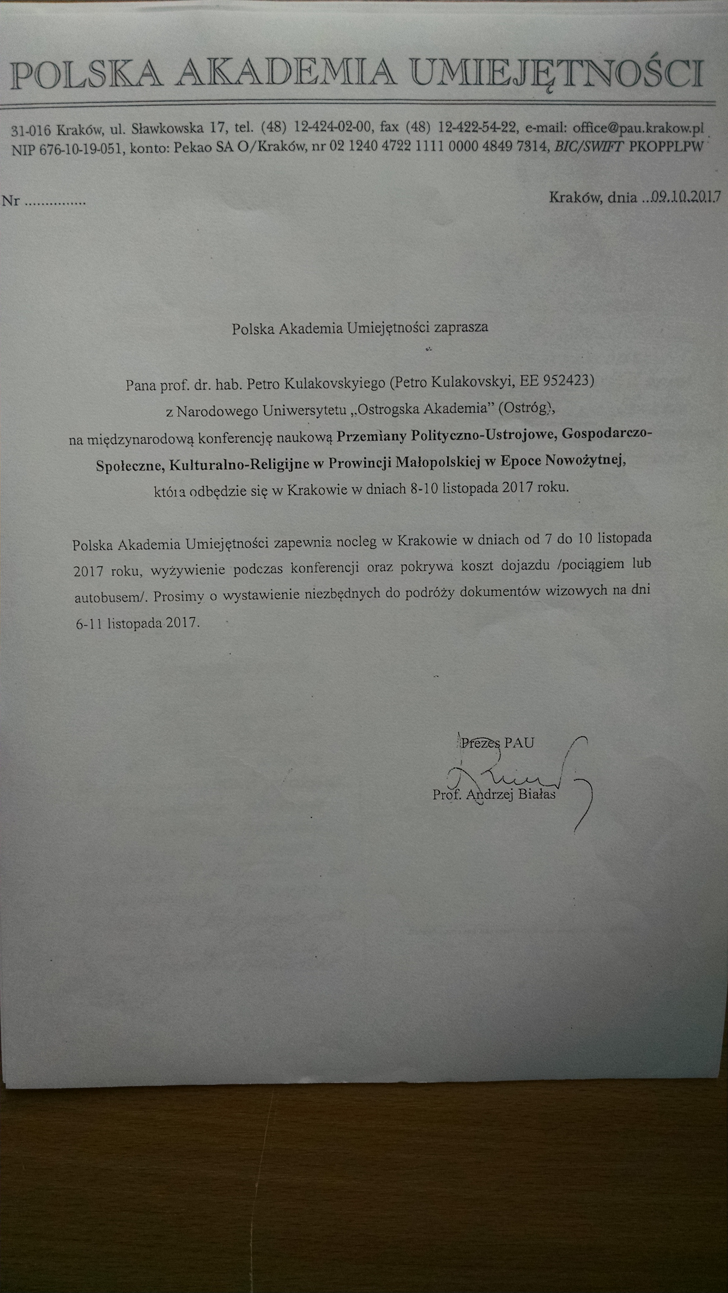 5. Międzynarodowa konferencja „Przemiany polityczno-ustrojowe, gospodarczo-społeczne, kulturalno-religijne w prowincji małopolskiej w epoce nowożytnej (Kraków, 8 – 10 listopada 2017) – temat referatu: Rada kozacka a sejmik szslachecki. Zapożyczenie wzorów.