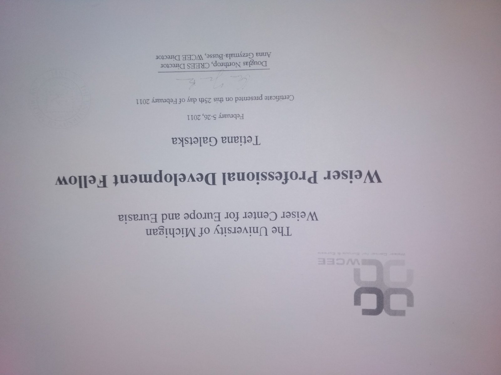 Стипендія Вейзер для проведення досліджень в Мічіганському університеті, Енн-Арбор, США 2011 р.
