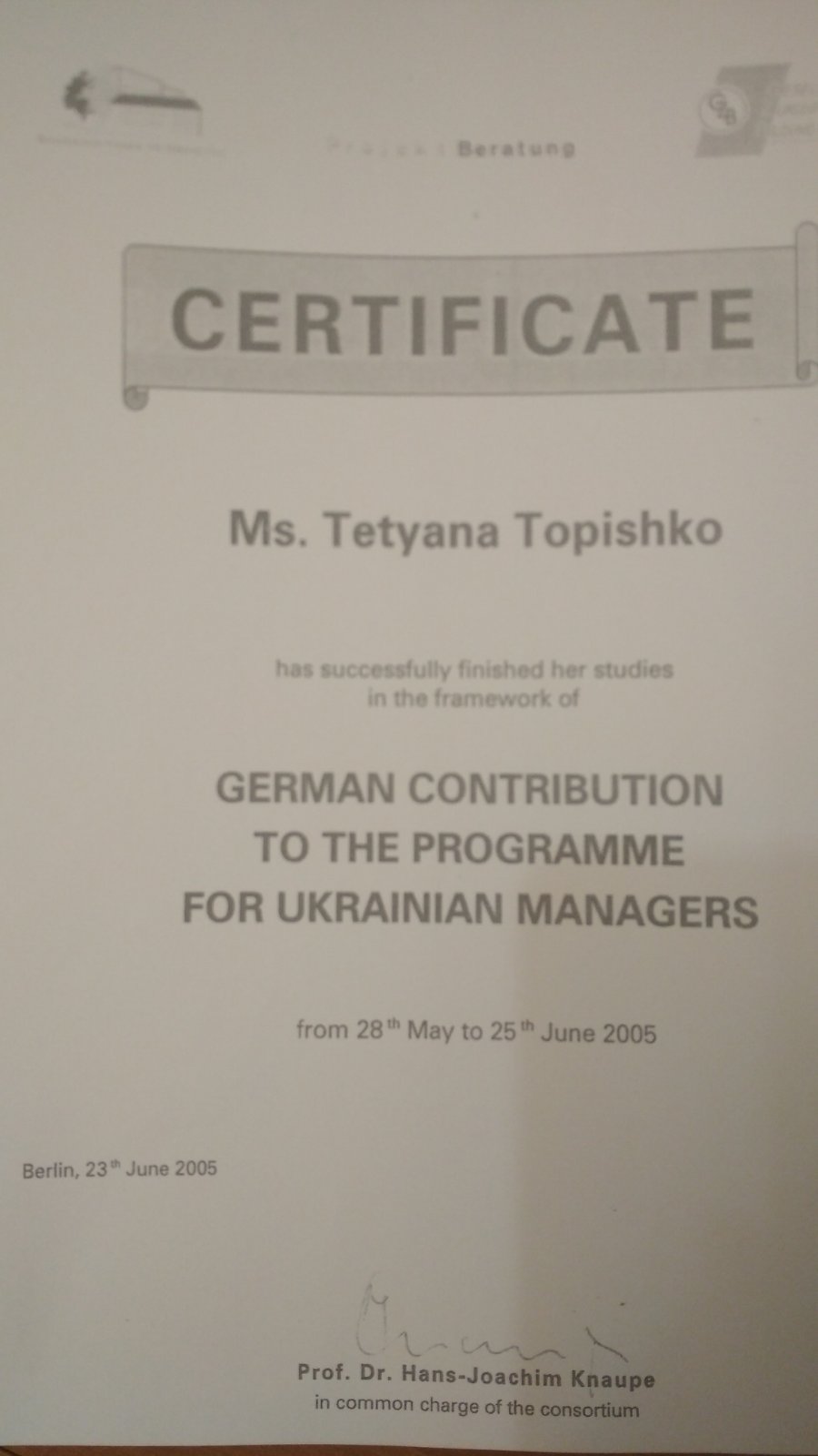 Стипендія Інвент для підвищення кваліфікації менеджерів, Берлін, Німеччина 2005 р.